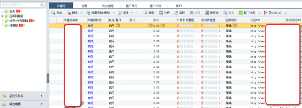 选好的关键词还可以对其进行出价管理、匹配模式选择以及对应的URL链接等。同样的如果不是很清楚具体含义,最好还是先查查资料,我这里解释的话要解释一大推,大家还是主动去查查资料加深印象的好。拟定好关键词后,就着手进行创意的编写了。创意的编写可谓重中之重,它关系着能不能吸引用户点击以及推广效果的好坏。当时我的创意是参考客户提供的资料来写的,毕竟客户对自家的产品了解的最多。